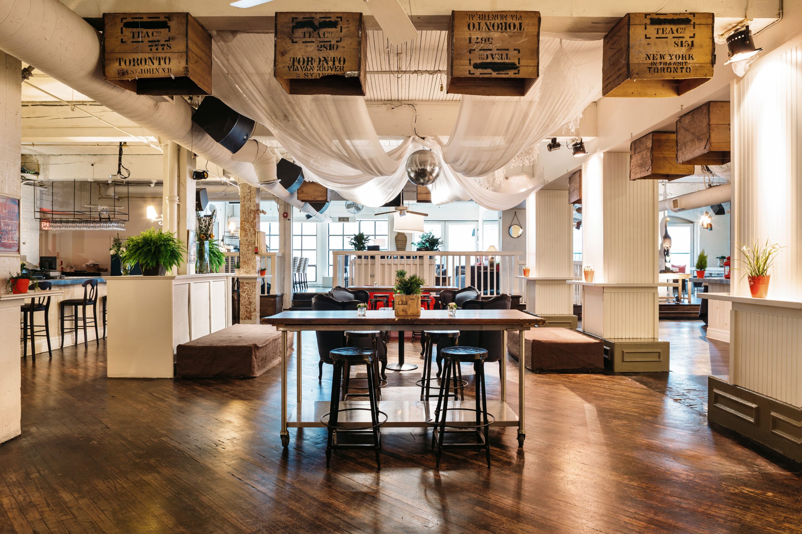 The Fifth Social Club is an attractive urban event venue inside the century-old Gelber warehouse with original douglas fir structure and floor to ceiling windows. Its feel changes from a light-filled loft during the day to an exciting nightclub in the evening complete with a built in DJ booth and several full-service bars. The open floorplan can accommodate a diverse range of set-up possibilities making it an ideal venue to host a myriad of large events from a wedding to a TIFF after party.